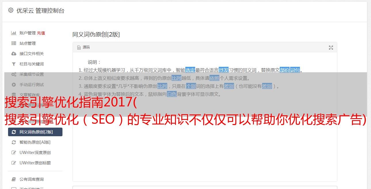 优采云 发布时间: 2022-01-12 22:05搜索引擎优化指南2017(