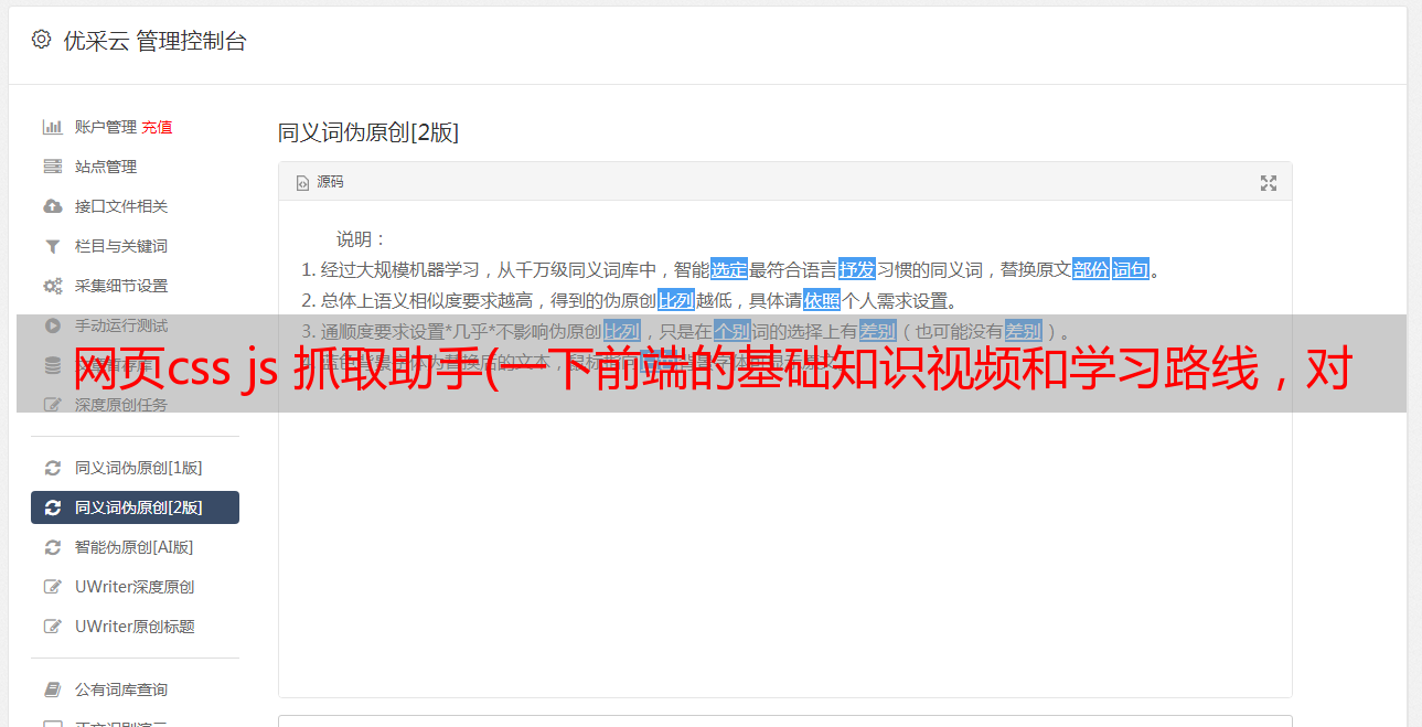 优采云 发布时间: 2022-01-12 23:05网页css js 抓取助手(一下前端的基础知识视频和学习路线,对比认识一下各个框架)