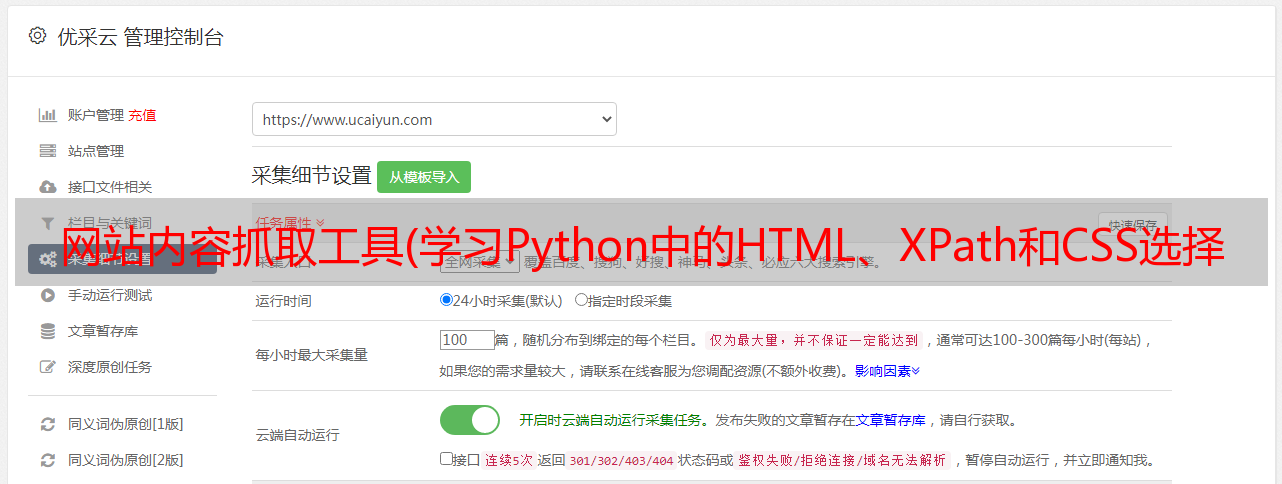 优采云 发布时间: 2022-01-12 23:23网站内容抓取工具(学习Python中的HTML、XPath和CSS选择器的搜索模式)