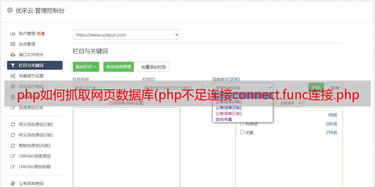 优采云 发布时间: 2022-01-13 00:05php如何抓取网页数据库(php不足连接connect.func连接.php底层封装界面)