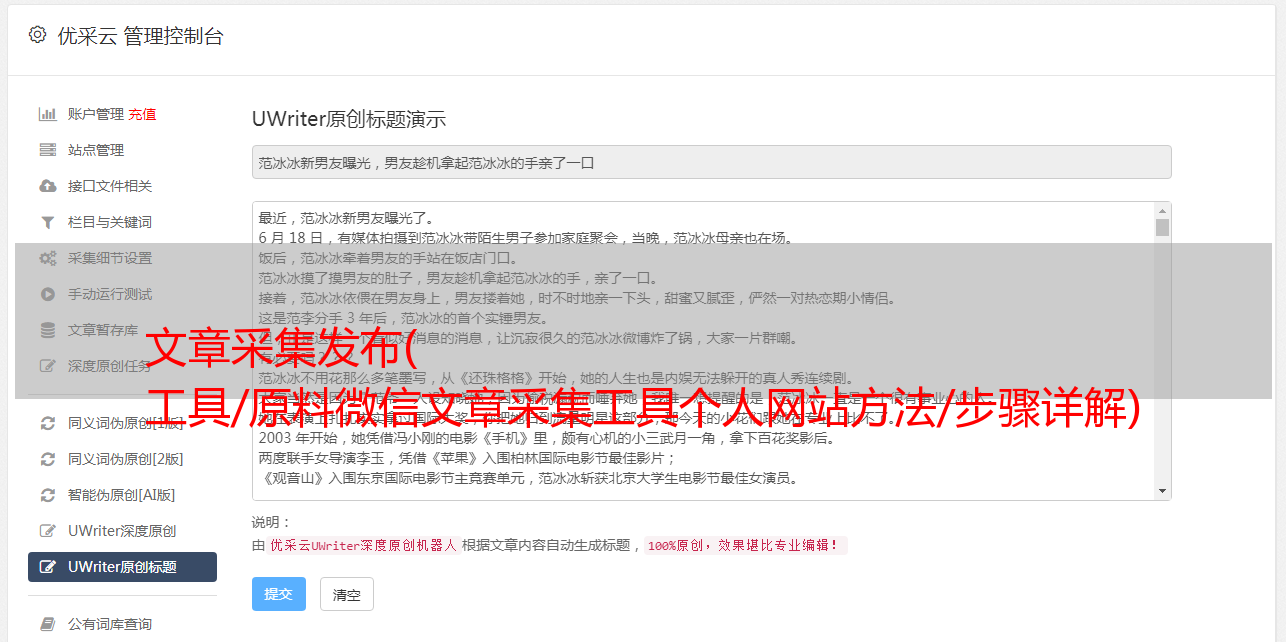 采集流行文章,批量检测原创。