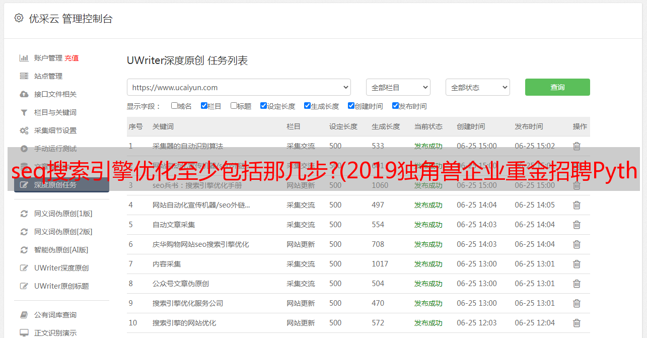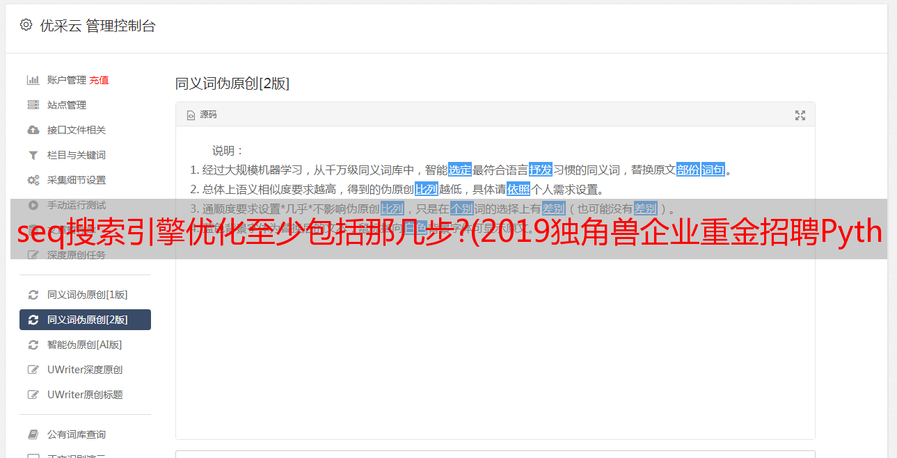优采云 发布时间: 2022-01-13 01:19seq搜索引擎优化至少包括那几步?(2019独角兽企业重金招聘Python工程师标准(图))