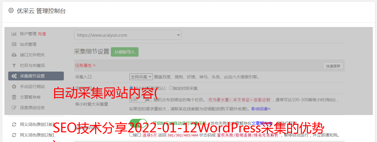 首先,Wordpress的插件很多,但不要安装太多插件,但基本都是付费的。否则会拖慢网站速度,降低服务器性能,直接导致网站访问速度过慢,消耗大量服务器资源。所以很多SEO朋友都会使用第三方软件来实现wordpress的采集发布功能!