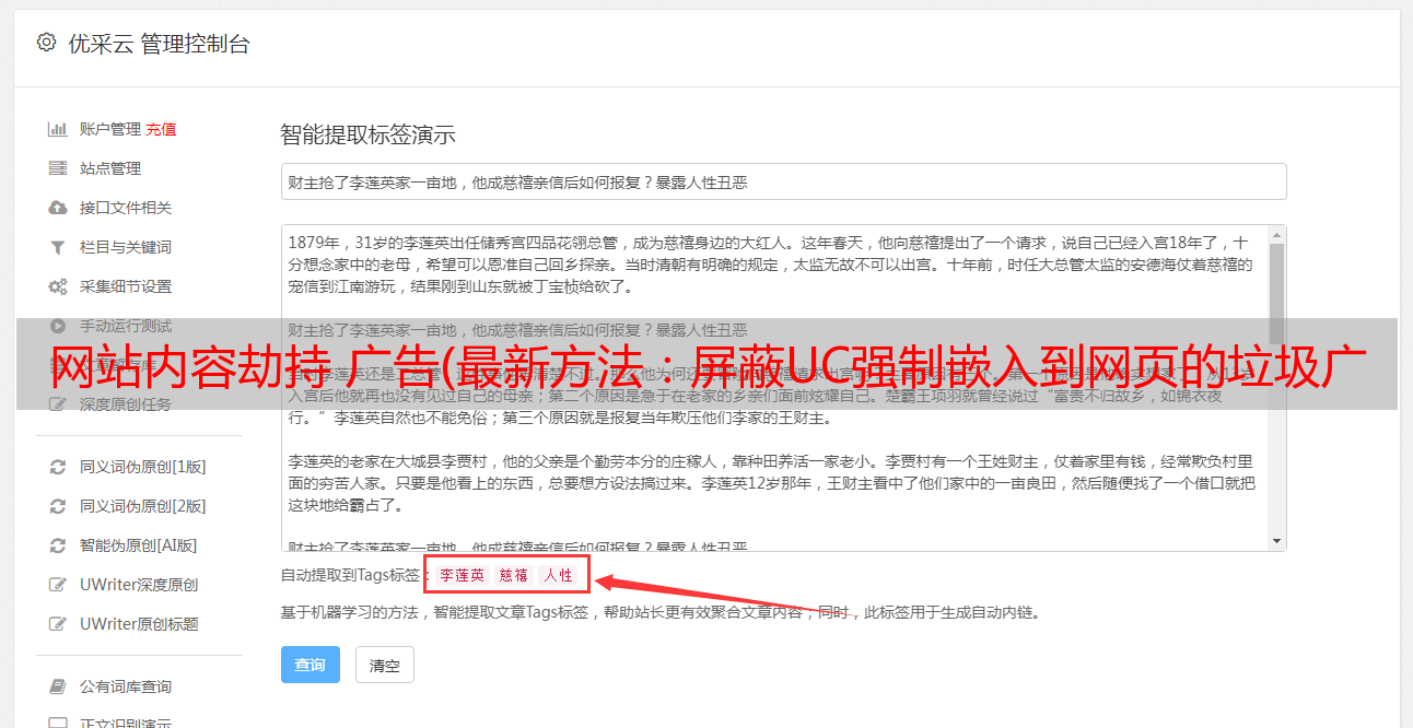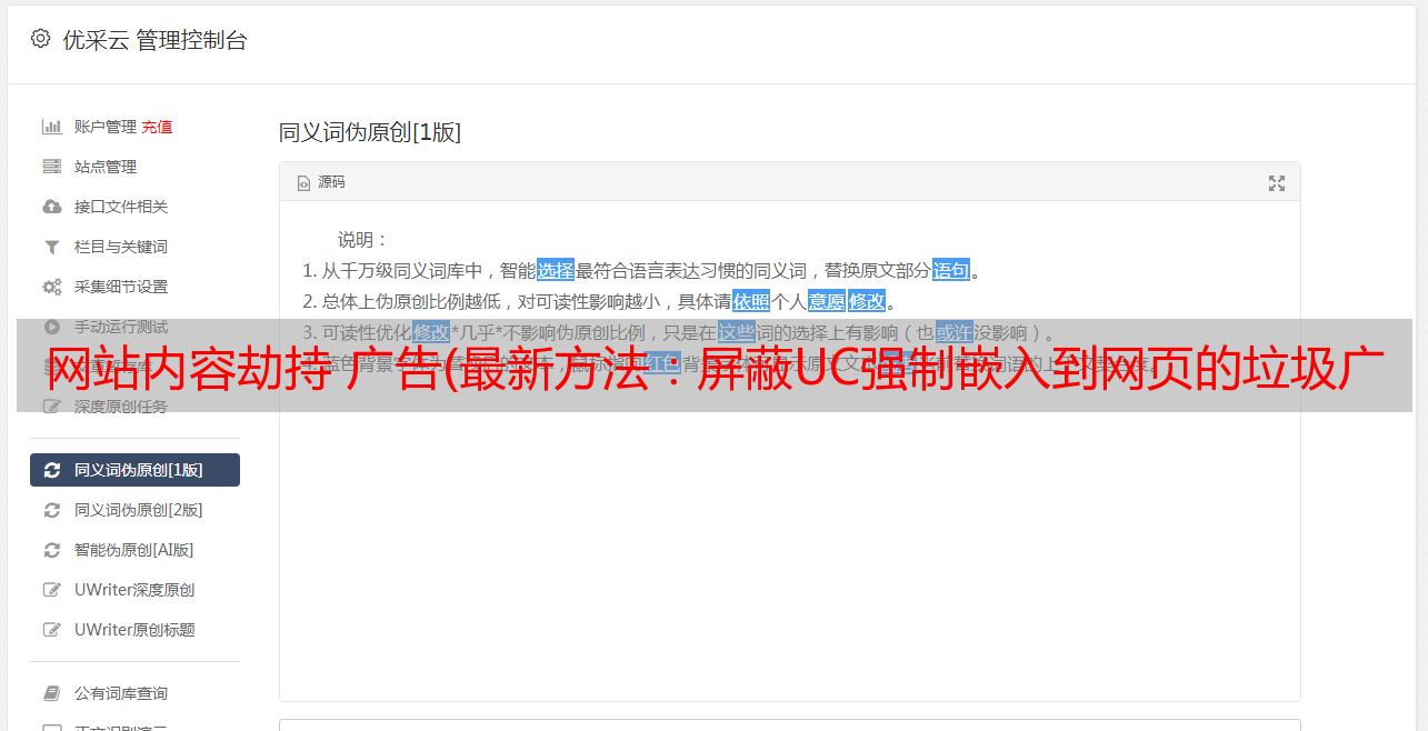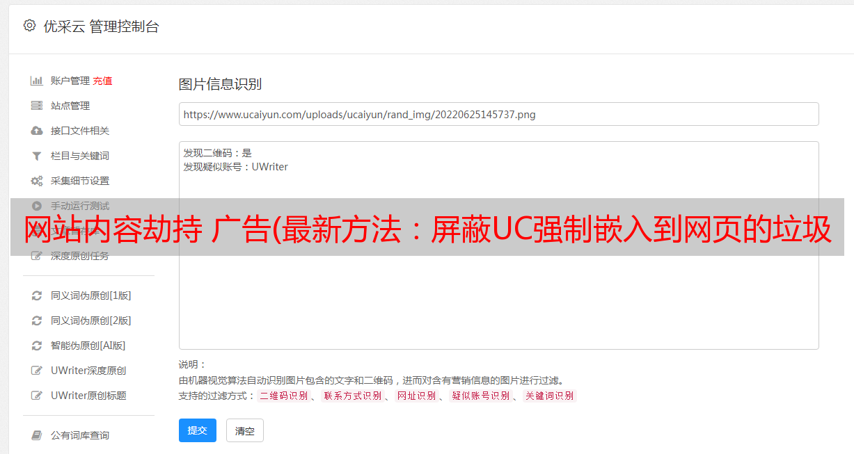 优采云 发布时间: 2022-01-13 05:15网站内容劫持 广告(最新方法:屏蔽UC强制嵌入到网页的垃圾广告方法)