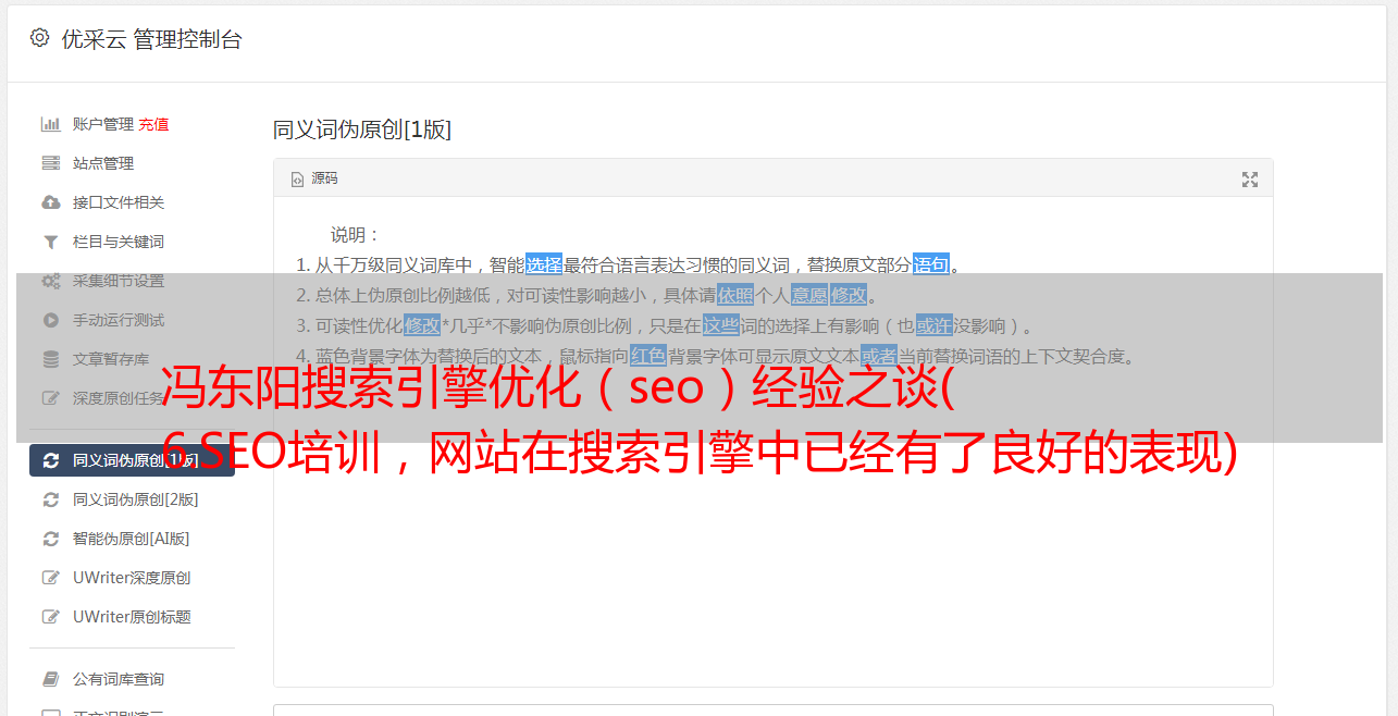优采云 发布时间: 2022-01-13 05:21冯东阳搜索引擎优化(seo)经验之谈(