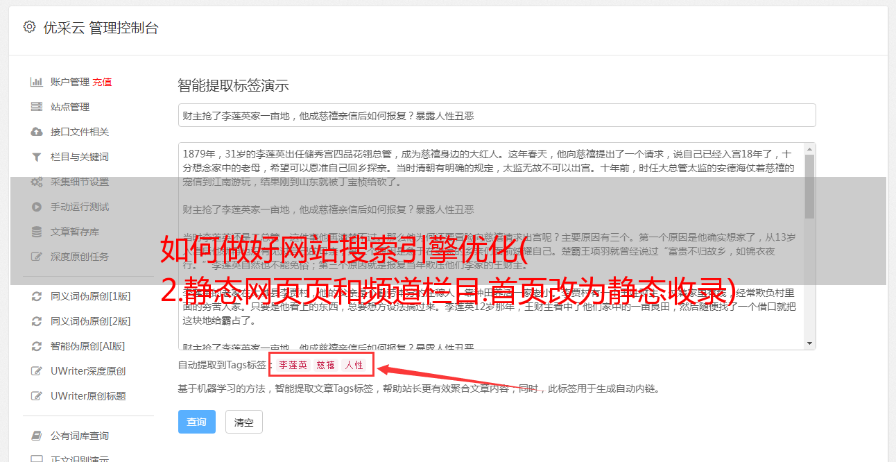 如何做好网站搜索引擎优化( 2.静态网页页和频道栏目.首页改为静态收录)