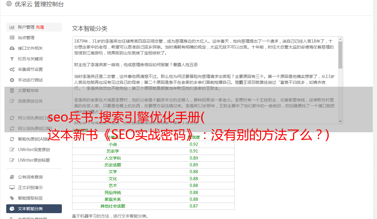 优采云 发布时间: 2022-01-13 08:24seo兵书-搜索引擎优化手册(