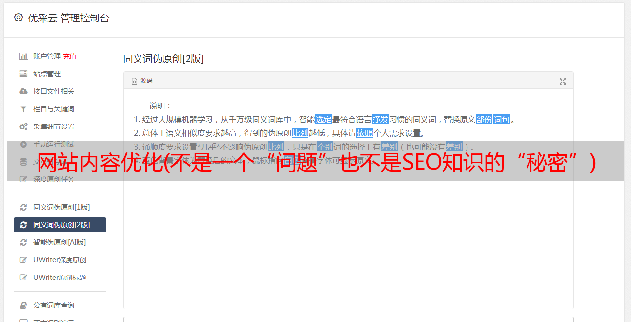 优采云 发布时间: 2022-01-13 09:15网站内容优化(不是一个“问题”也不是SEO知识的“秘密”)