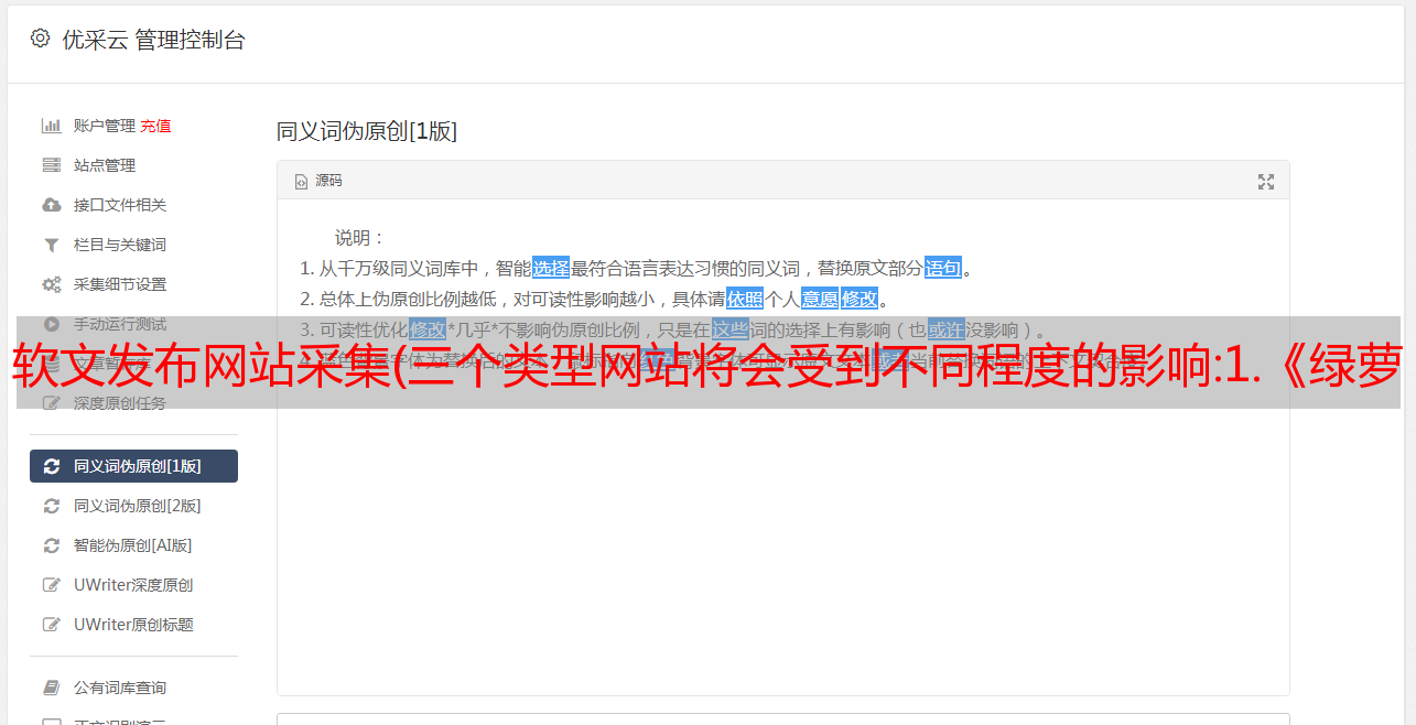 优采云 发布时间: 2022-01-13 14:18软文发布网站采集(三个类型网站将会受到不同程度的影响:1.《绿萝算法1.0》)