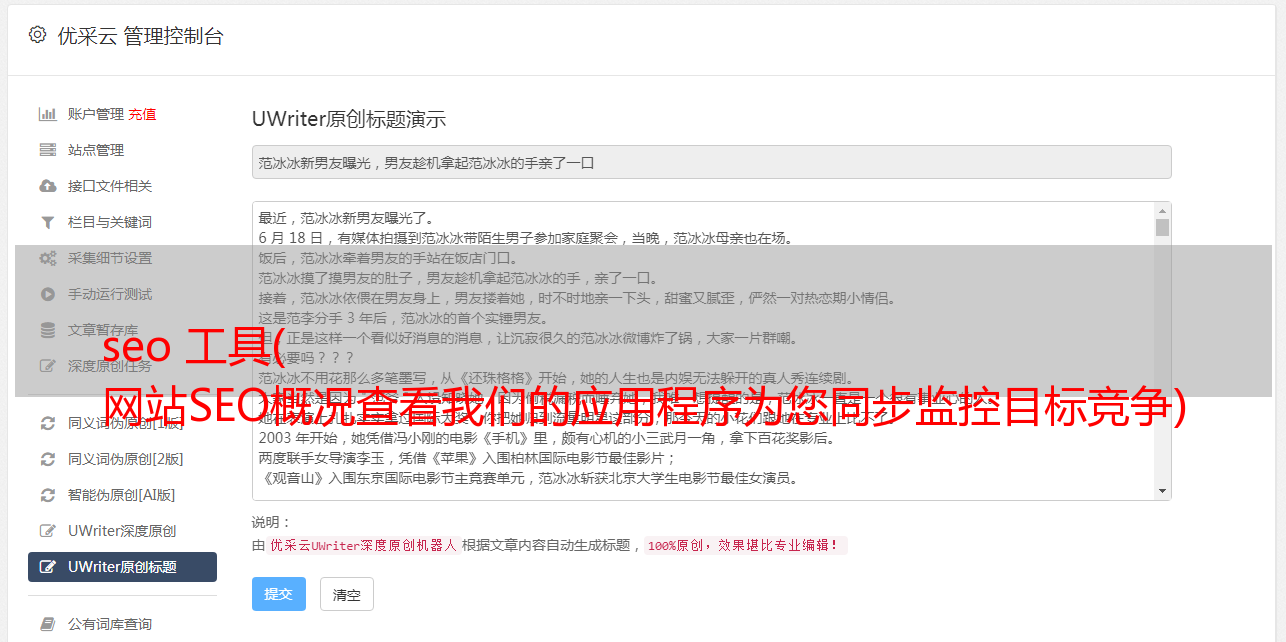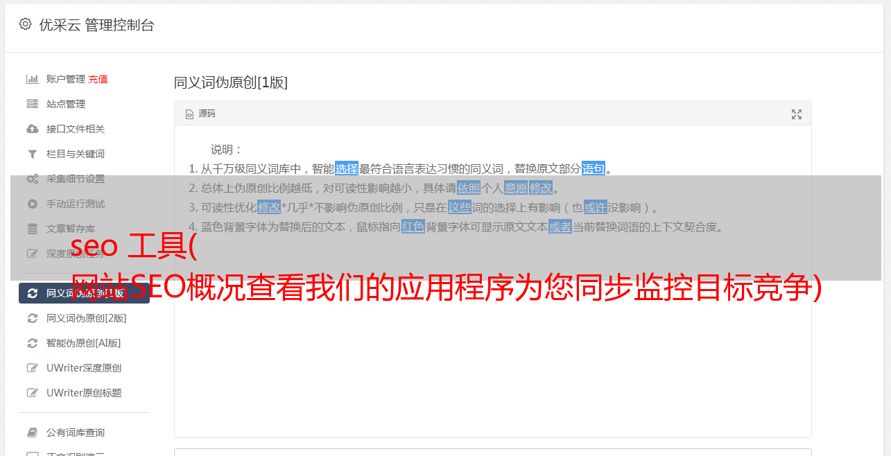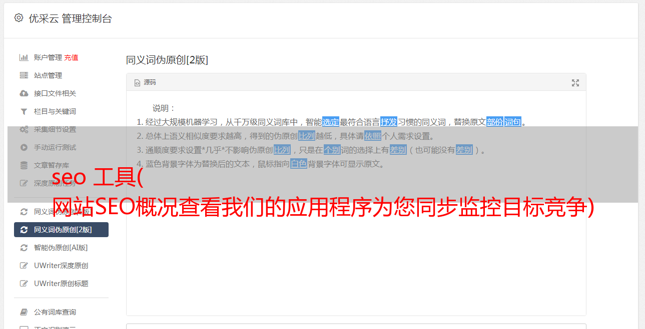 seo 工具( 网站SEO概况查看我们的应用程序为您同步监控目标竞争)