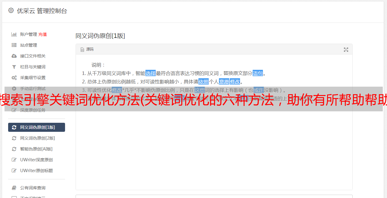 优采云 发布时间: 2022-01-13 16:15搜索引擎关键词优化方法(关键词优化的六种方法,助你有所帮助帮助!