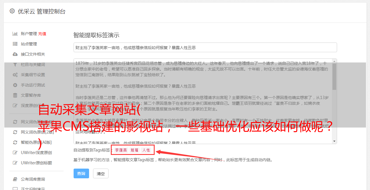 自动采集文章网站( 苹果CMS搭建的影视站,一些基础优化应该如何做呢? )