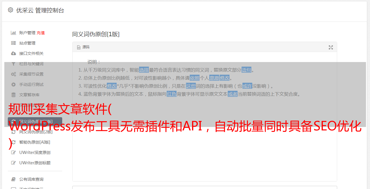 3. comes with the function of 伪原创, which makes the published 文章 more 原创 friendly, and increases the friendliness of search engines. 收录 rate increase for 网站