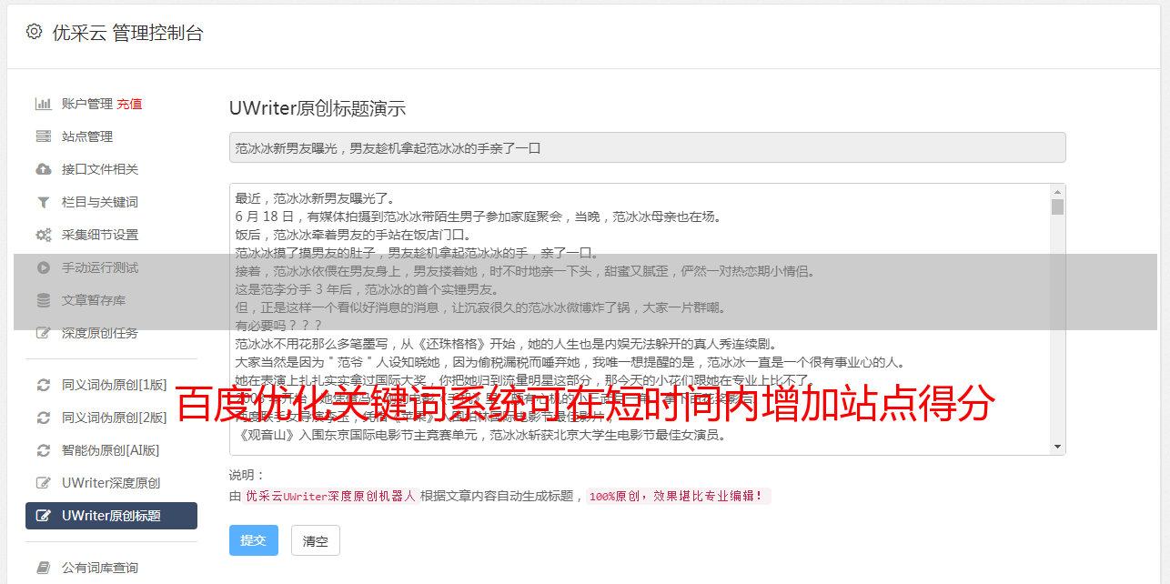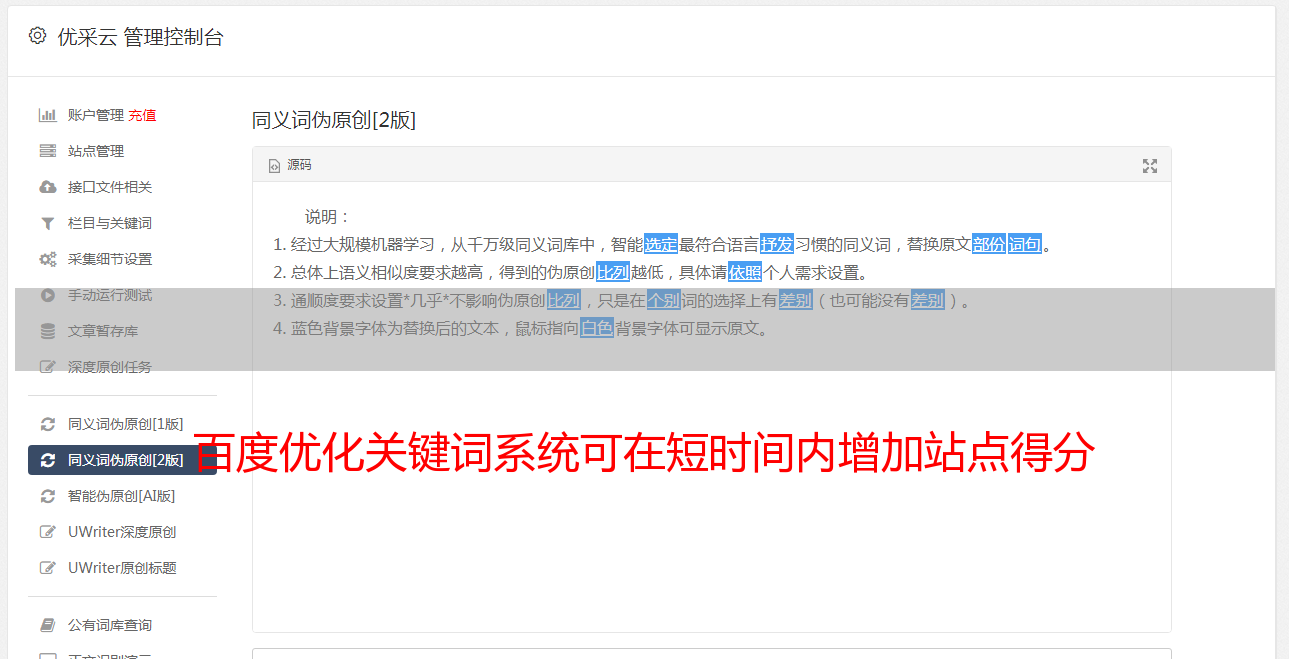 百度优化关键词系统可在短时间内增加站点得分