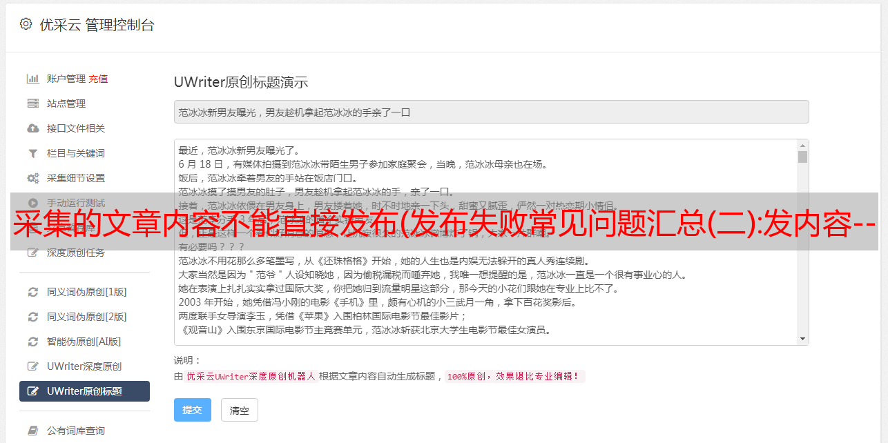 采集的文章内容不能直接发布(发布失败常见问题汇总(二):发内容--WEB发布错误 )