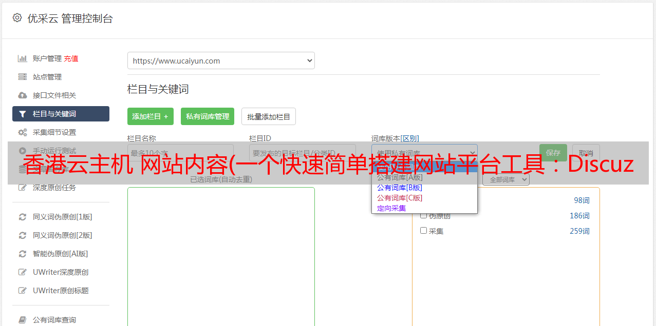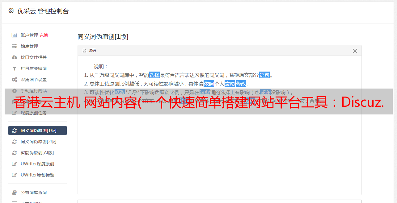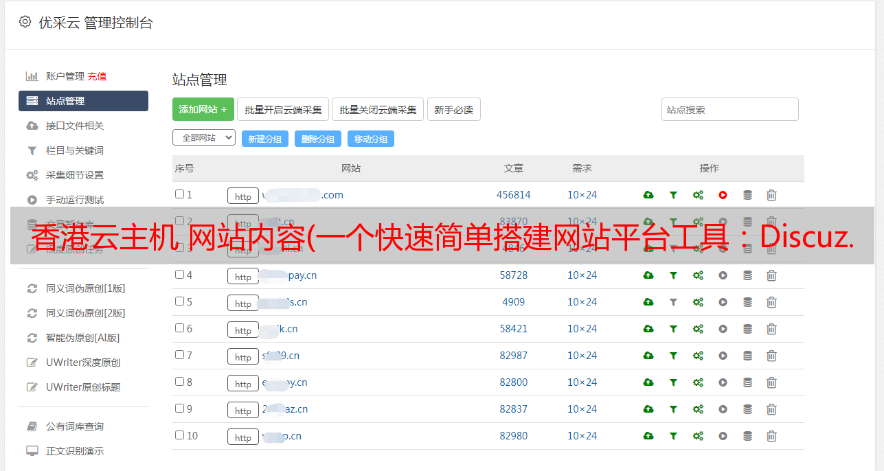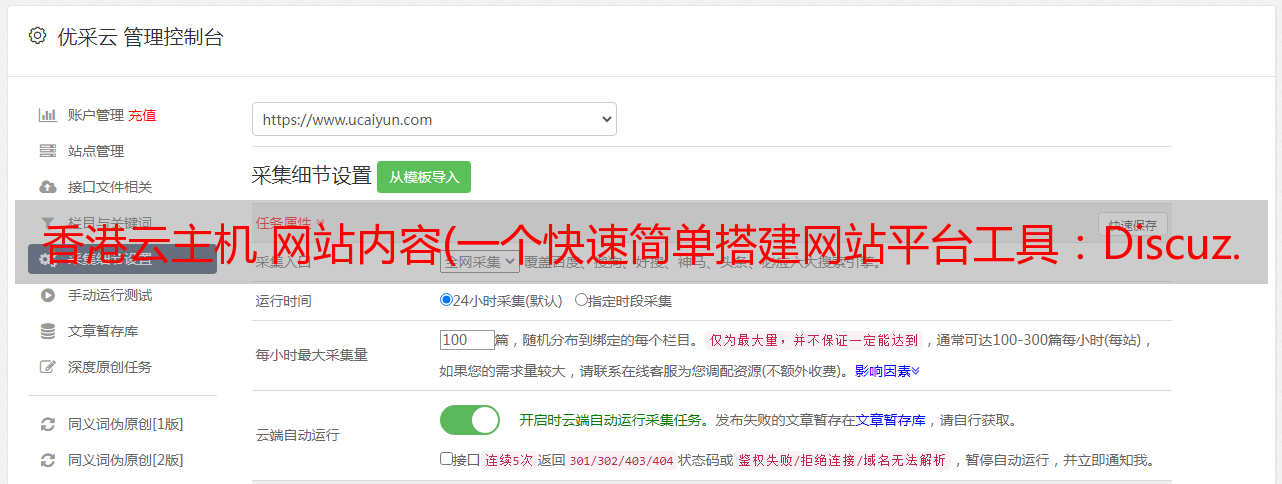 优采云 发布时间: 2022-01-13 20:00香港云主机 网站内容(一个快速简单搭建网站平台工具:Discuz.关于这个工具)