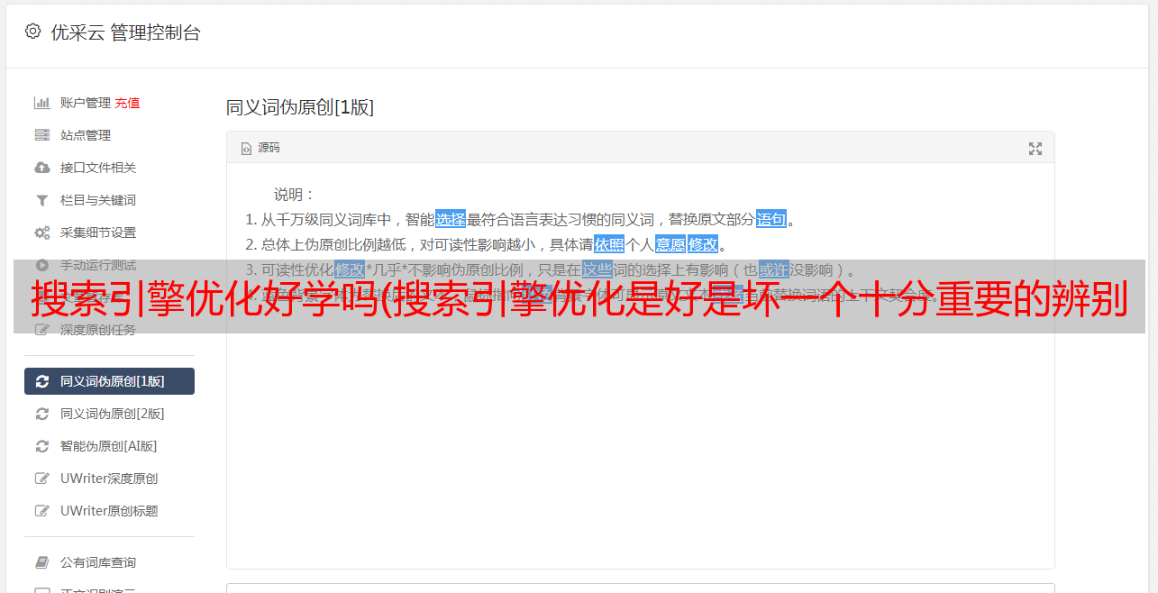 优采云 发布时间: 2022-01-13 20:21搜索引擎优化好学吗(搜索引擎优化是好是坏一个十分重要的辨别标准?)
