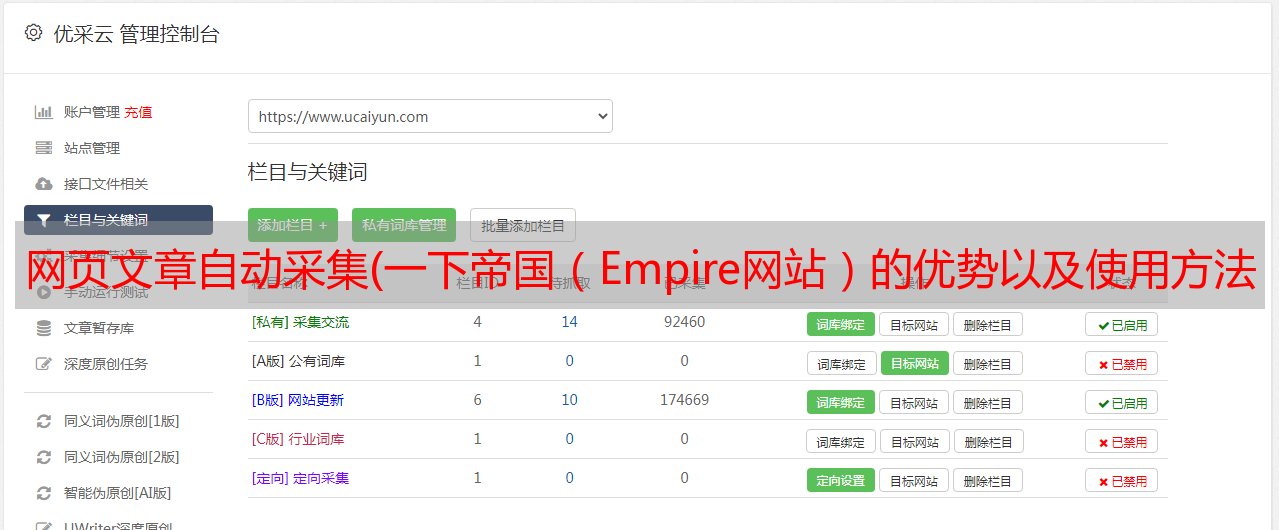 优采云 发布时间: 2022-01-14 00:20网页文章自动采集(一下帝国(Empire网站)的优势以及使用方法实现网站SEO优化自动关键词排名
