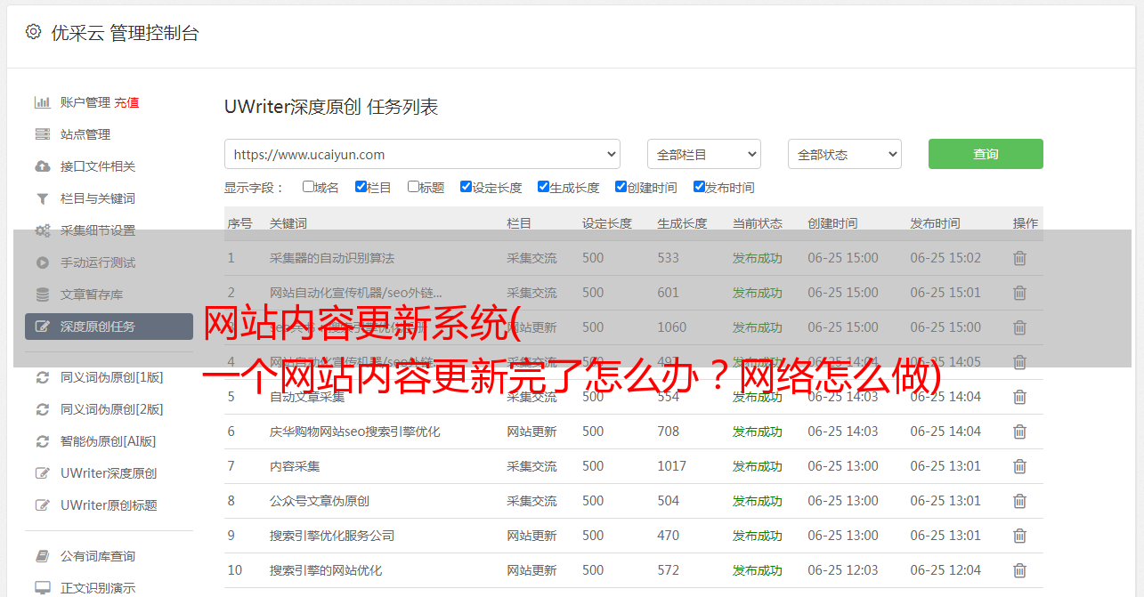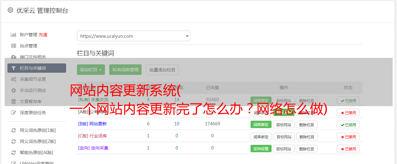 优采云 发布时间: 2022-01-14 02:07网站内容更新系统(