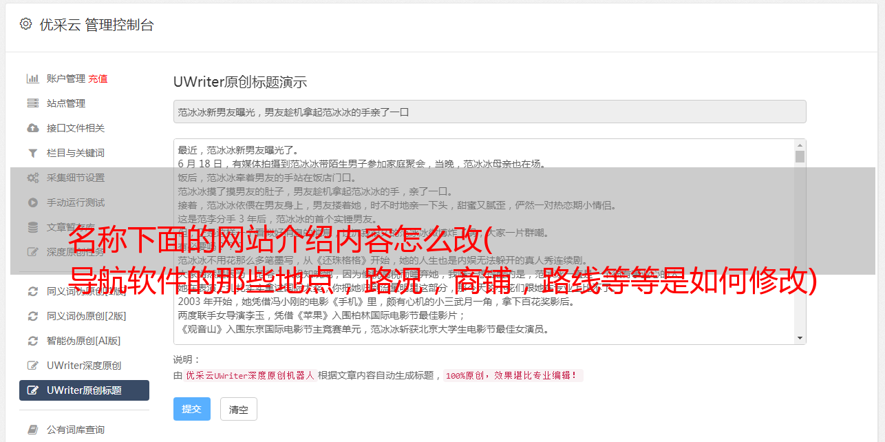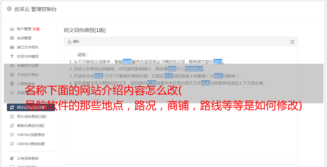 优采云 发布时间: 2022-01-14 02:39名称下面的网站介绍内容怎么改(