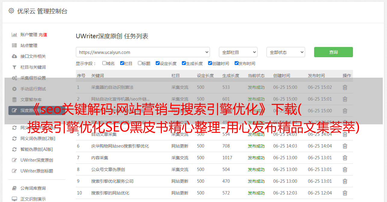 优采云 发布时间: 2022-01-14 05:02《seo关键解码:网站营销与搜索引擎优化》下载(