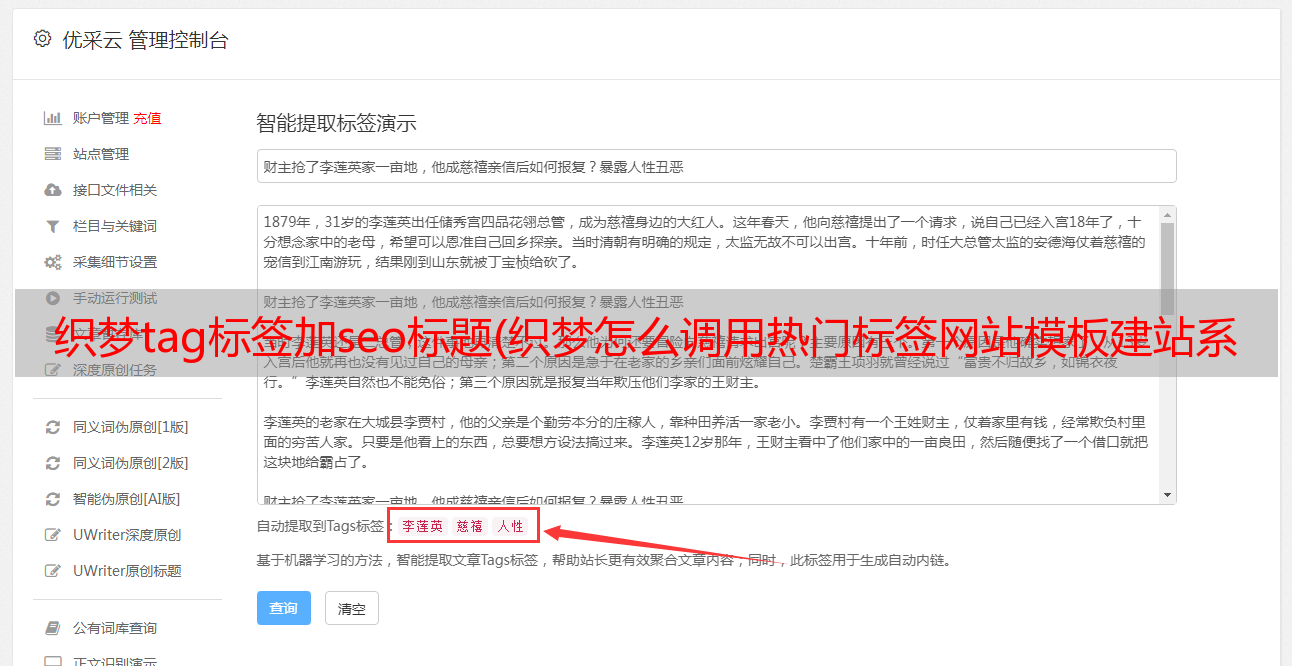 优采云 发布时间: 2022-01-14 06:02织梦tag标签加seo标题(织梦怎么调用热门标签网站模板建站系统高端网站制作)
