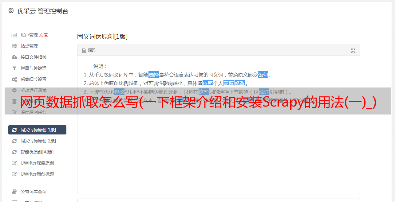 网页数据抓取怎么写(一下框架介绍和安装Scrapy的用法(一)_)