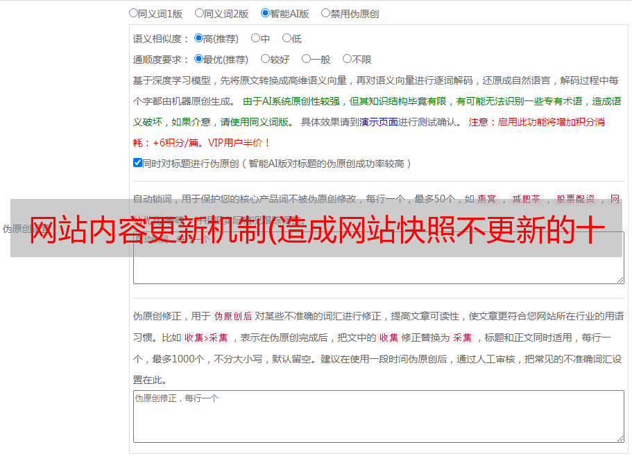 网站内容更新机制(造成网站快照不更新的十种情况造成的的呢致命错误)