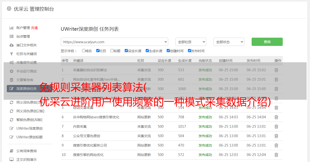 免规则采集器列表算法( 优采云进阶用户使用频繁的一种模式采集数据介绍)