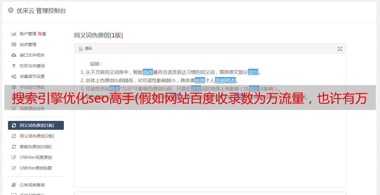 优采云 发布时间: 2022-01-14 11:22搜索引擎优化seo高手(假如网站百度收录数为万流量,也许有万这个法则)