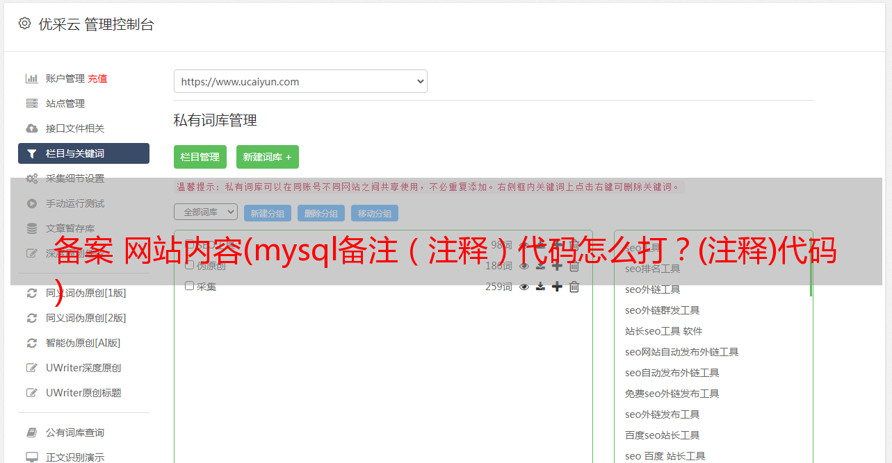 优采云 发布时间: 2022-01-14 13:13备案 网站内容(mysql备注(注释)代码怎么打?(注释)代码