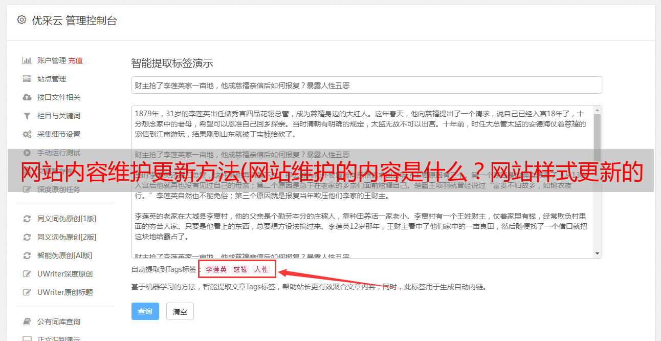 优采云 发布时间: 2022-01-14 15:11网站内容维护更新方法(网站维护的内容是什么?网站样式更新的注意事项)