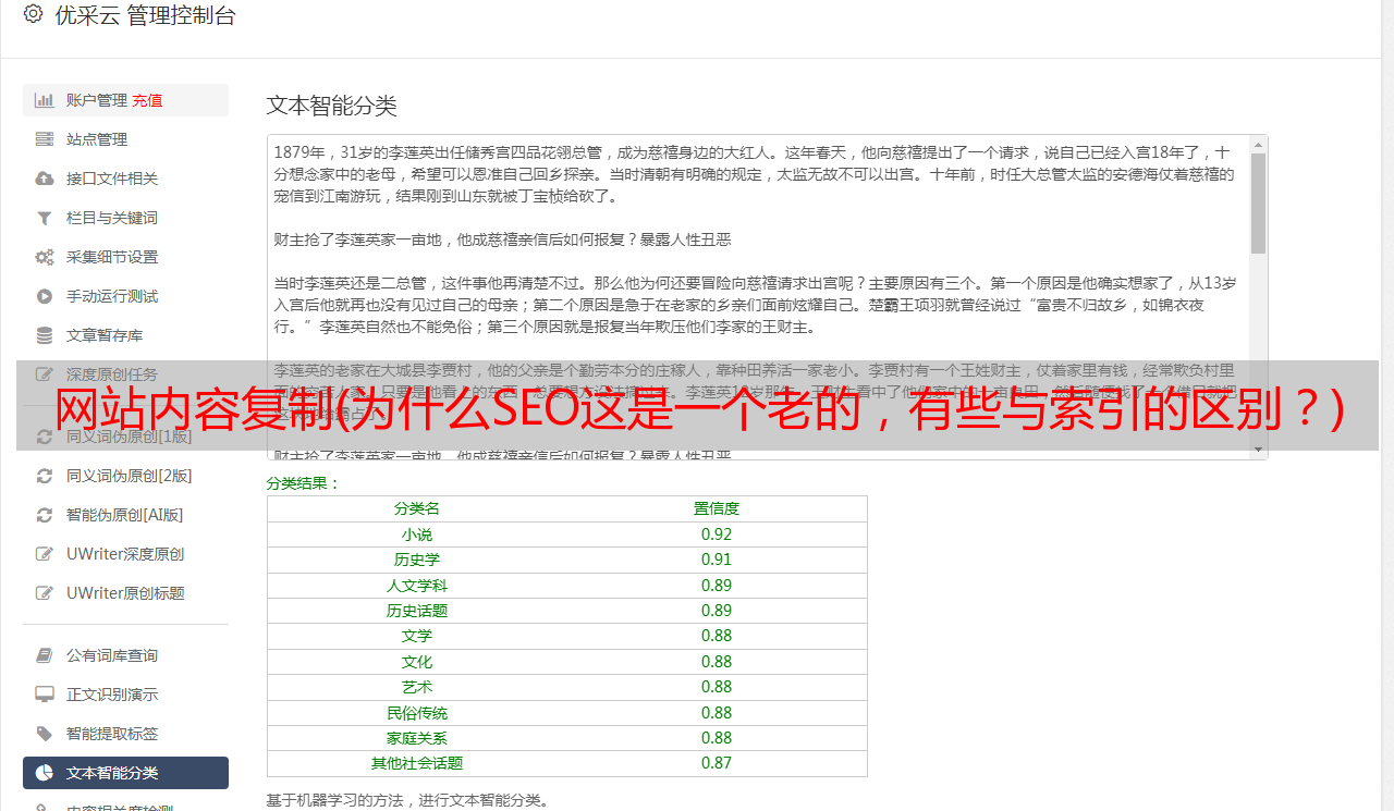 优采云 发布时间: 2022-01-14 16:20网站内容复制(为什么SEO这是一个老的,有些与索引的区别?)