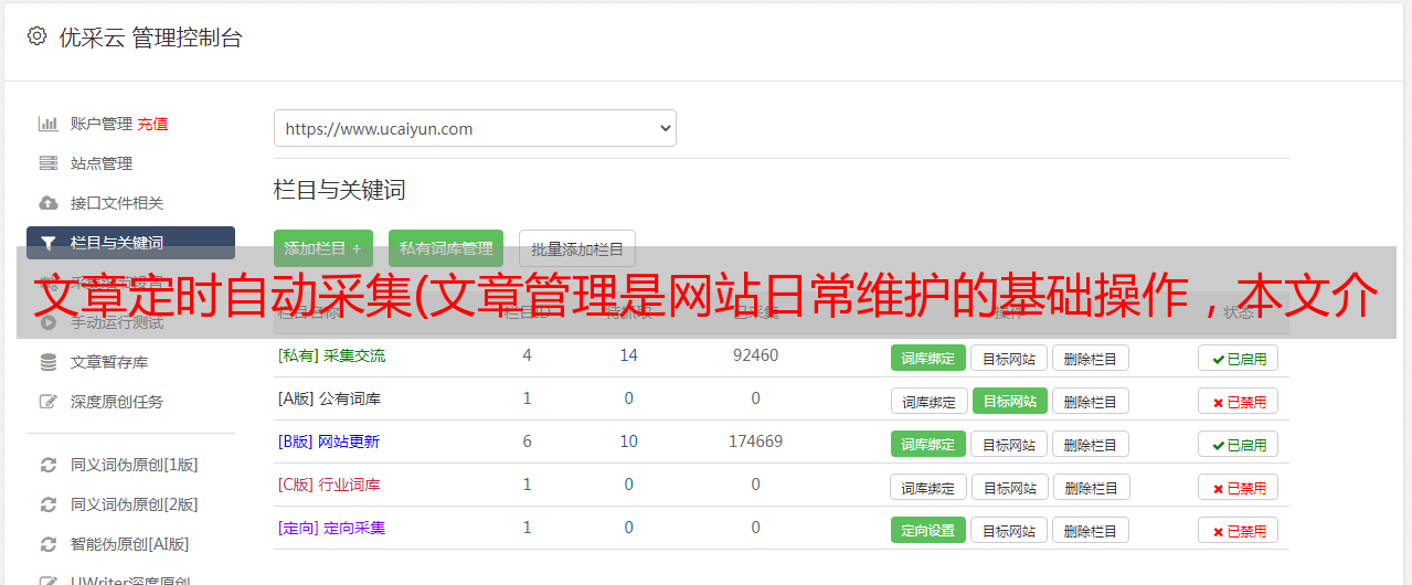 优采云 发布时间: 2022-01-14 18:18文章定时自动采集(文章管理是网站日常维护的基础操作,本文介绍文件管理)