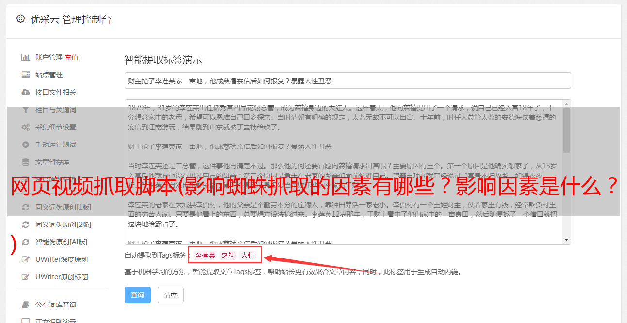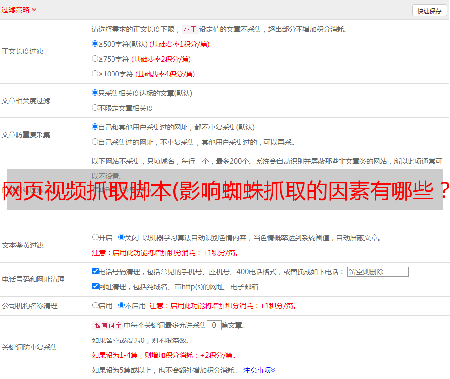 优采云 发布时间: 2022-01-15 02:02网页视频抓取脚本(影响蜘蛛抓取的因素有哪些?影响因素是什么?