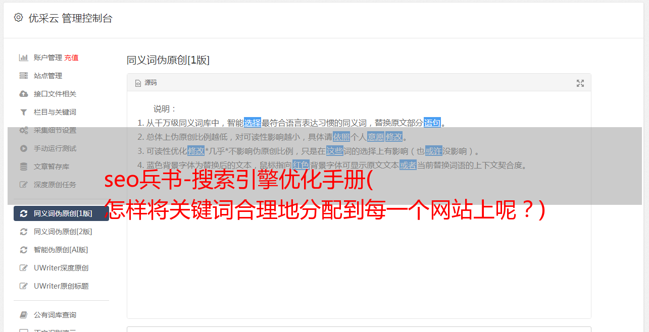 seo兵书-搜索引擎优化手册( 怎样将关键词合理地分配到每一个网站上呢?)