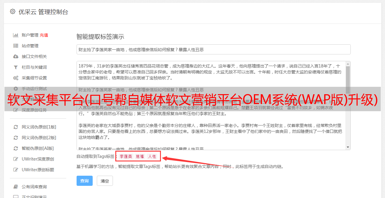 优采云 发布时间: 2022-01-15 05:07软文采集平台(口号帮自媒体软文营销平台OEM系统(WAP版)升级)