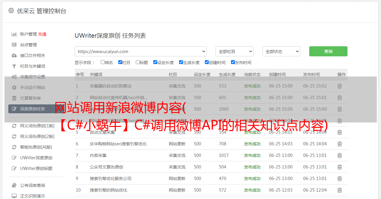 优采云 发布时间: 2022-01-15 10:02网站调用新浪微博内容(