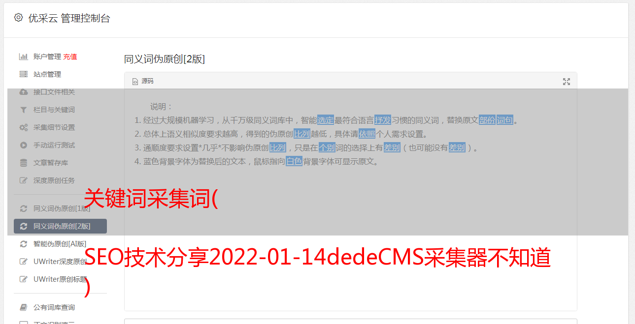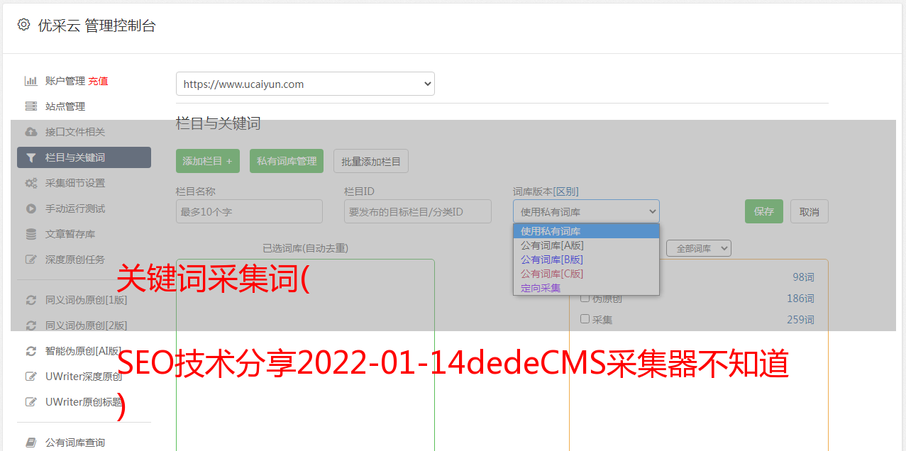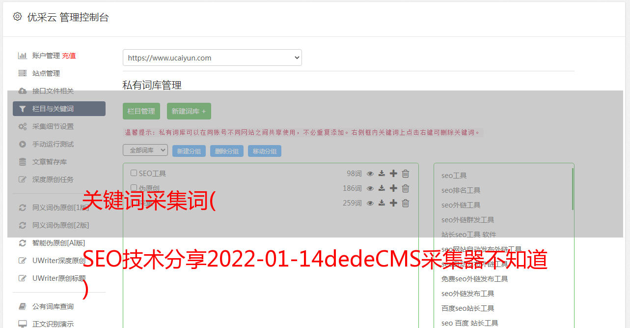 关键词采集词( SEO技术分享2022-01-14dedeCMS采集器不知道 )
