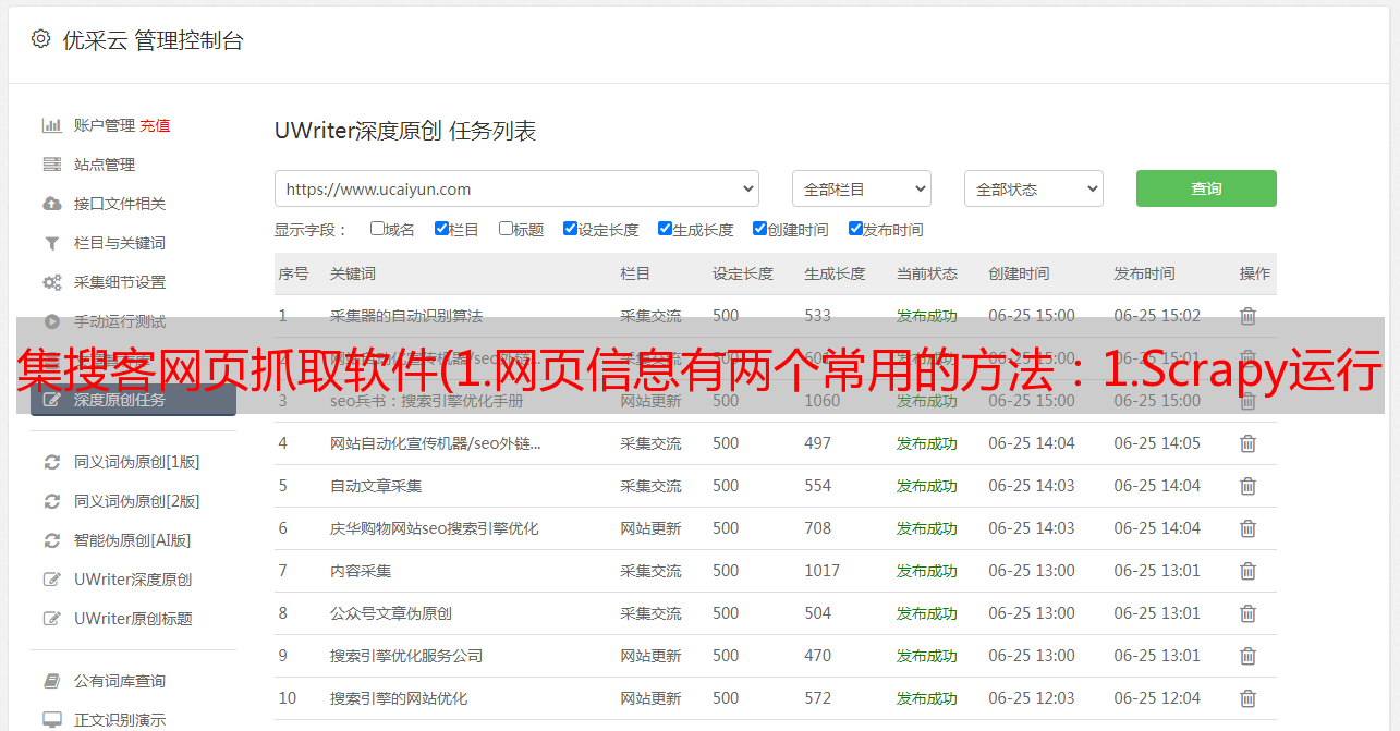 优采云 发布时间: 2022-01-15 12:17集搜客网页抓取软件(1.网页信息有两个常用的方法:1.Scrapy运行流程