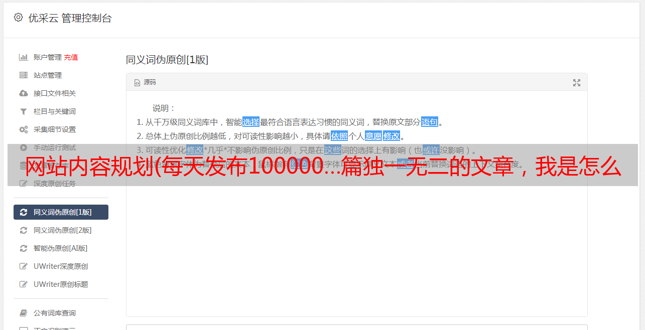 优采云 发布时间: 2022-01-15 15:18网站内容规划(每天发布100000…篇独一无二的文章,我是怎么做到的?)