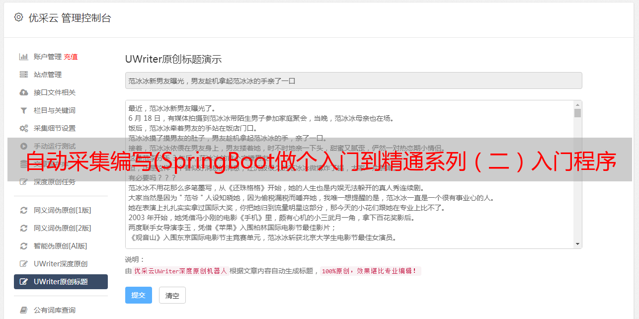 自动采集编写(SpringBoot做个入门到精通系列(二)入门程序(一))