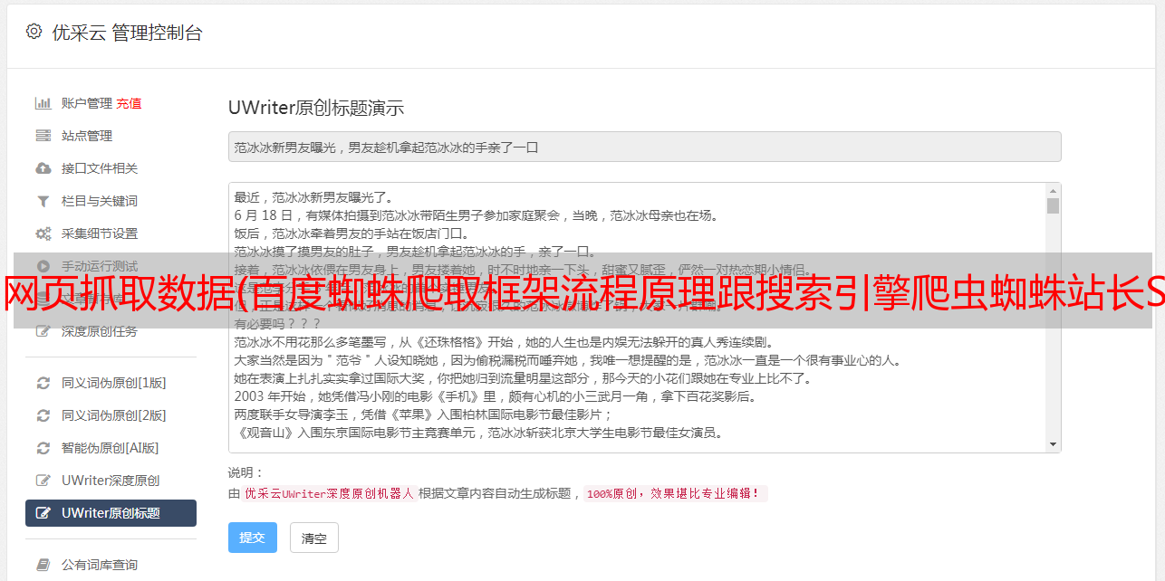 网页抓取数据(百度蜘蛛爬取框架流程原理跟搜索引擎爬虫蜘蛛站长SEO )