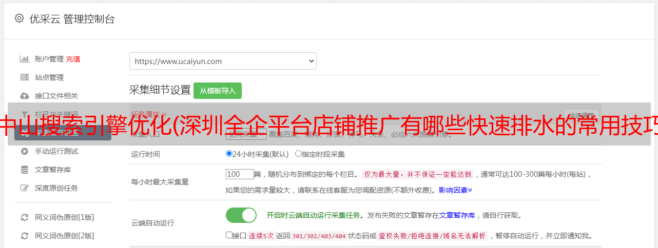 优采云 发布时间: 2022-01-15 23:20中山搜索引擎优化(深圳全企平台店铺推广有哪些快速排水的常用技巧?