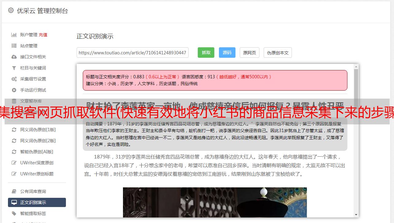 优采云 发布时间: 2022-01-15 23:21集搜客网页抓取软件(快速有效地将小红书的商品信息采集下来的步骤(组图)