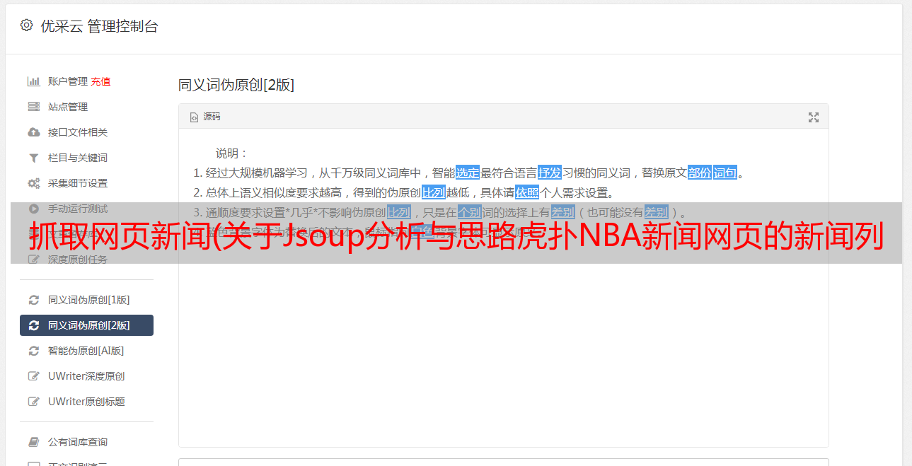 优采云 发布时间: 2022-01-16 02:02抓取网页新闻(关于Jsoup分析与思路虎扑NBA新闻网页的新闻列表)