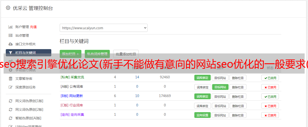 优采云 发布时间: 2022-01-16 03:10seo搜索引擎优化论文(新手不能做有意向的网站seo优化的一般要求(图)