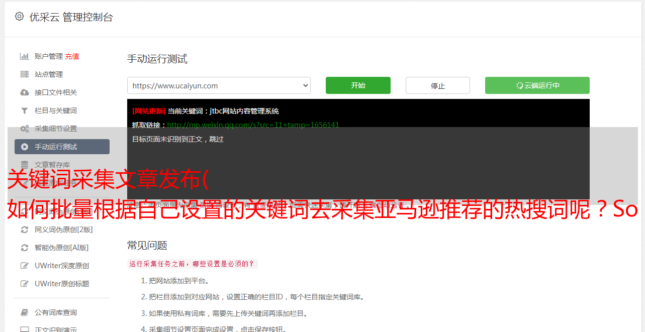 优采云 发布时间: 2022-01-16 11:06如何批量根据自己设置的关键词去采集亚马逊推荐的热搜词呢?SoEasy!)