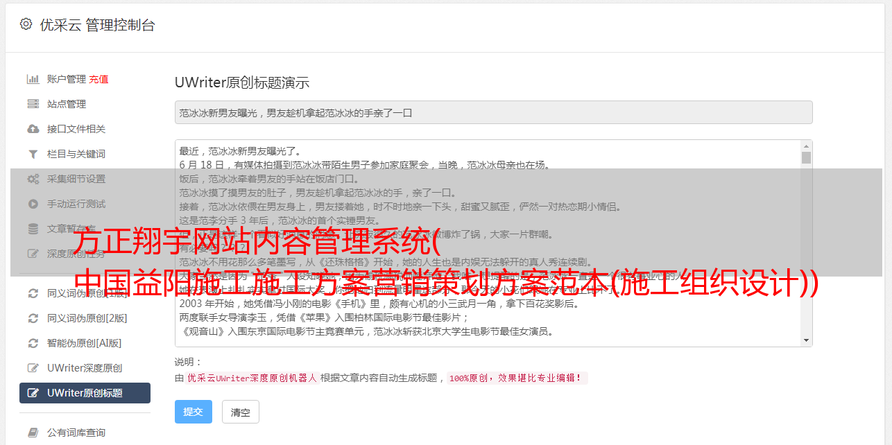 方正翔宇网站内容管理系统( 中国益阳施工施工方案营销策划方案范本(施工组织设计))