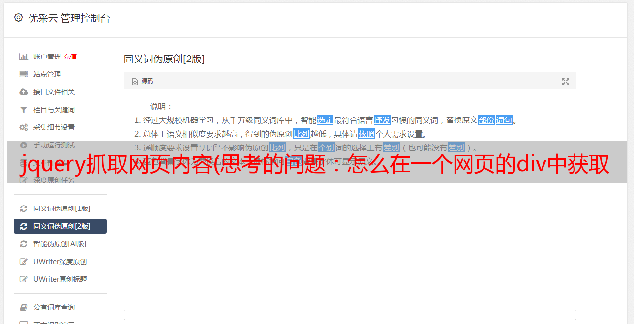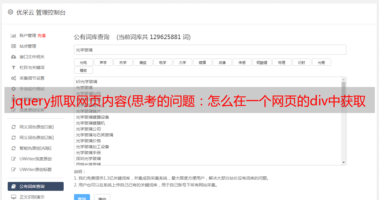 优采云 发布时间: 2022-01-16 13:00jquery抓取网页内容(思考的问题:怎么在一个网页的div中获取部分内容)